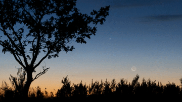 10月19、20日黎明前,化身為啟明星的金星與一彎殘?jiān)略跂|方低空近距離相伴,上演一幕浪漫的“星月童話”。