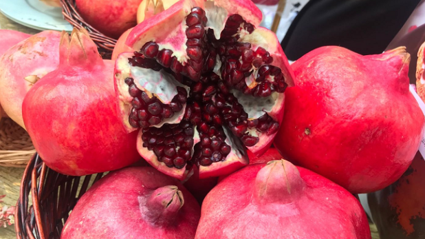 果實近圓球形,果皮薄、果面光潔;平均單果重400g;籽粒紫紅色,呈寶石狀,晶瑩剔透;汁多,酸甜可口。
