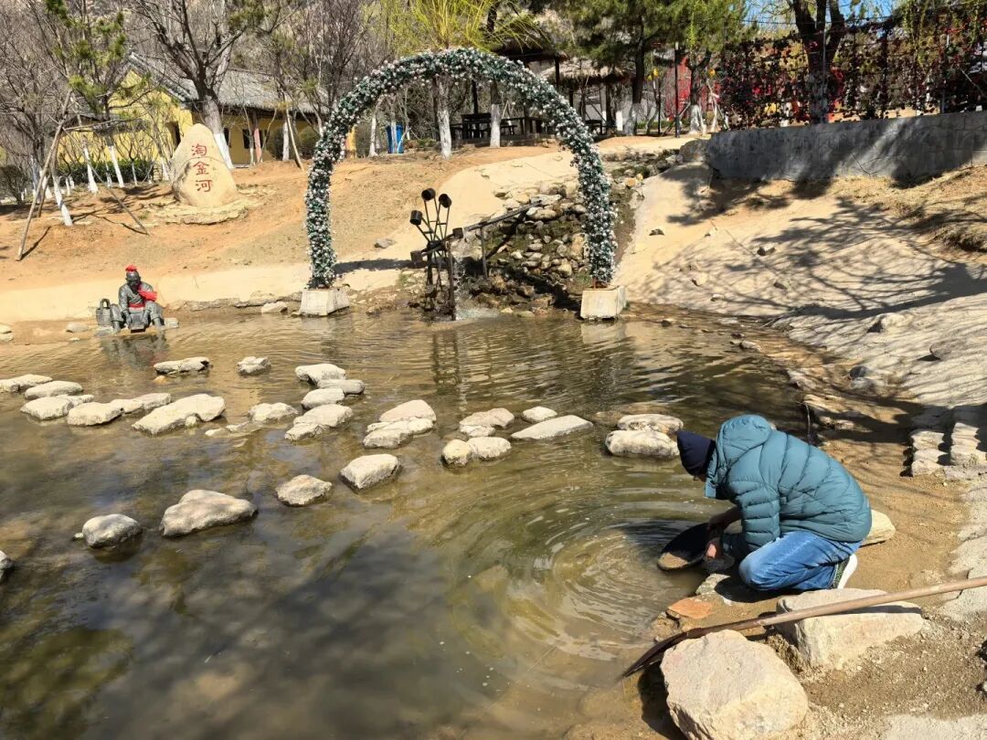 用篩子在水下淘金,在泥沙中追逐金色夢想,感受“千淘萬漉雖辛苦,吹盡狂沙始到金”的驚喜。