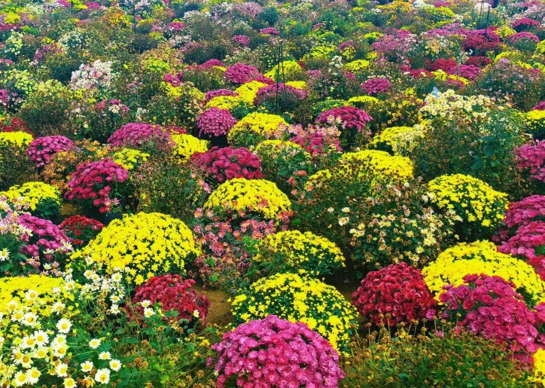 山間那片花海不容錯過,色彩繽紛的菊花在湛藍天空下,猶如曠野上打翻的調色盤,花海中立著一架古色古香的秋千,隨手一拍,都是無需濾鏡的秋日大片!