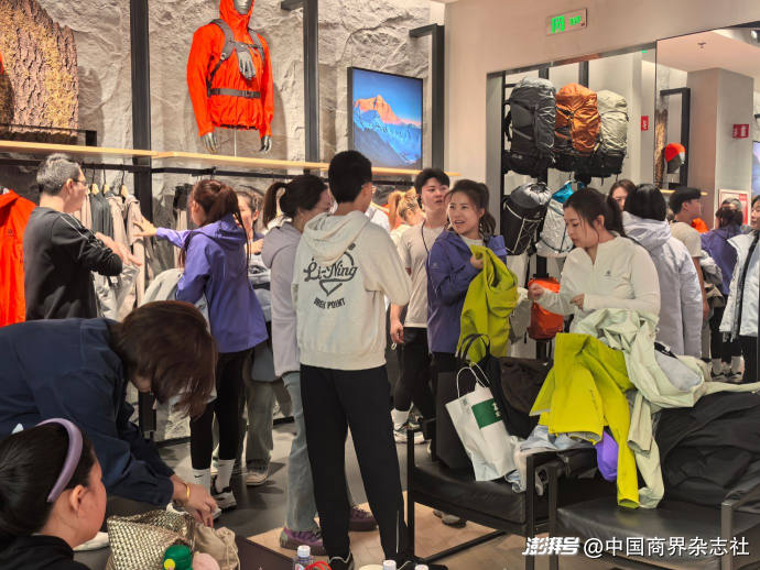 線下方面,沖鋒衣銷售同樣緊俏。10月25日,記者在北京大興薈聚商場(chǎng)看到,凱樂(lè)石、北面、蕉下、本來(lái)等多家戶外運(yùn)動(dòng)服飾門店內(nèi),均有不少消費(fèi)者在試穿沖鋒衣。因?yàn)檫M(jìn)店客流管控,始祖鳥門店外等候進(jìn)店的消費(fèi)者甚至排起了長(zhǎng)隊(duì)。