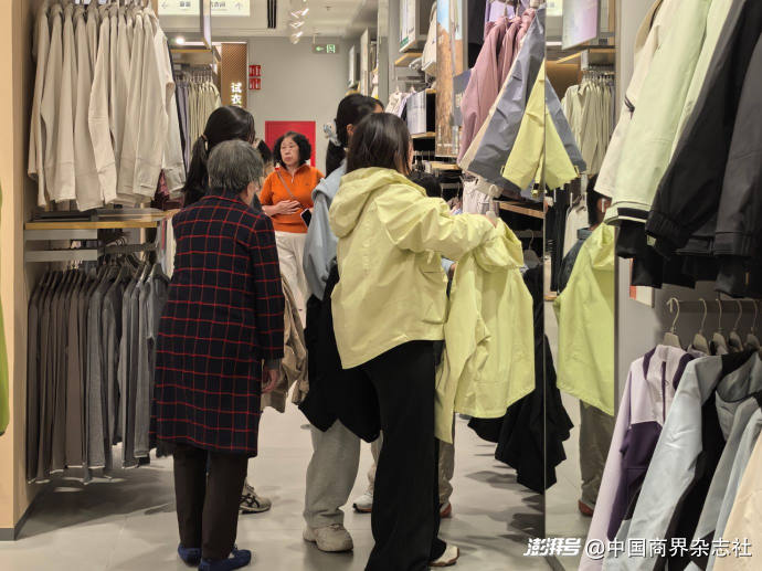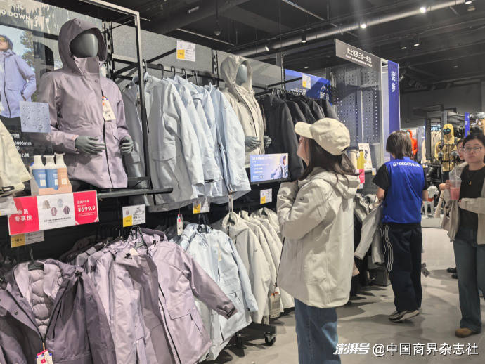 近日,不少消費(fèi)者在凱樂(lè)石門店內(nèi)選購(gòu)沖鋒衣。