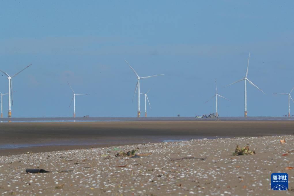 在越南南部永隆省沿海,數(shù)十座風機矗立在碧海之上,銀白色葉片迎風旋轉(zhuǎn),將陣陣海風化為源源不斷的清潔電能。這個由中國企業(yè)承建的平大海上風電項目,成為當?shù)貪O民出海時的醒目新地標。