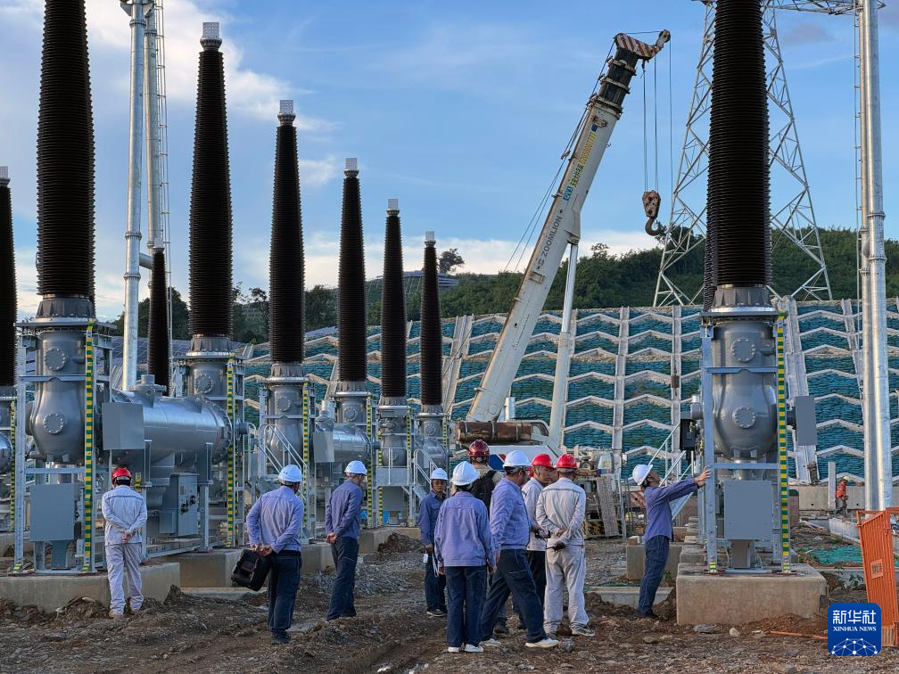 這是10月16日在老撾烏多姆賽省拍攝的1000兆瓦光伏工程的升壓站建設(shè)現(xiàn)場。新華社發(fā)(王玉萍攝)