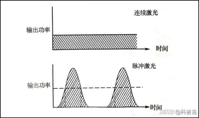 連續(xù)激光與脈沖激光,輸出功率與時間的關(guān)系對比圖