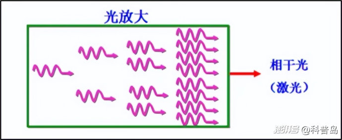 那么,試想一下,如果我們在一個密閉的空間里,放上很多同樣的原子,然后把大量的電子都“踢”到臺階上面,做好發(fā)射的準(zhǔn)備。這時,只要有其中一個原子先發(fā)出了一個光子,那么,周圍其他站在臺階上的電子也會受到它的激發(fā),發(fā)出和它相同的光子。