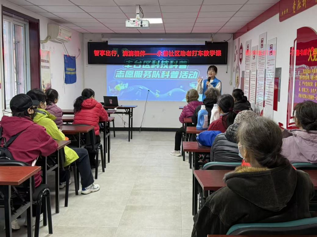為持續(xù)推動科技惠民,扎實推進(jìn)“智慧助老”行動,10月31日,豐臺區(qū)科技科普志愿服務(wù)隊聯(lián)合北京市夕陽再晨社會工作服務(wù)中心,在豐臺街道永善社區(qū)開展以“滴滴打車的使用”為主題的智慧助老志愿服務(wù)活動。本次活動聚焦老年人日常出行的實際需求,教授大家如何使用“滴滴打車”手機(jī)軟件,實現(xiàn)快速叫車、預(yù)約出行,讓出行變得更加簡單、安全。