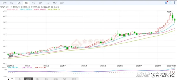 與此同時,老鋪黃金的股價也出現(xiàn)了戲劇性的轉(zhuǎn)折。去年,老鋪黃金股價一路狂飆,較發(fā)行價最高漲幅超26倍。但從今年7月開始,其股價開始持續(xù)下滑,距最高點已跌超40%。