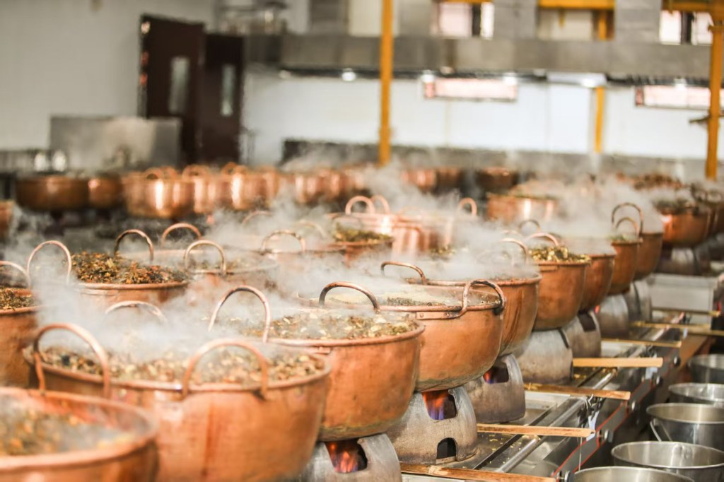 上海岳陽醫(yī)院熱氣騰騰的膏方制作間內(nèi),膏方藥材正式入鍋。本文圖片均為院方供圖