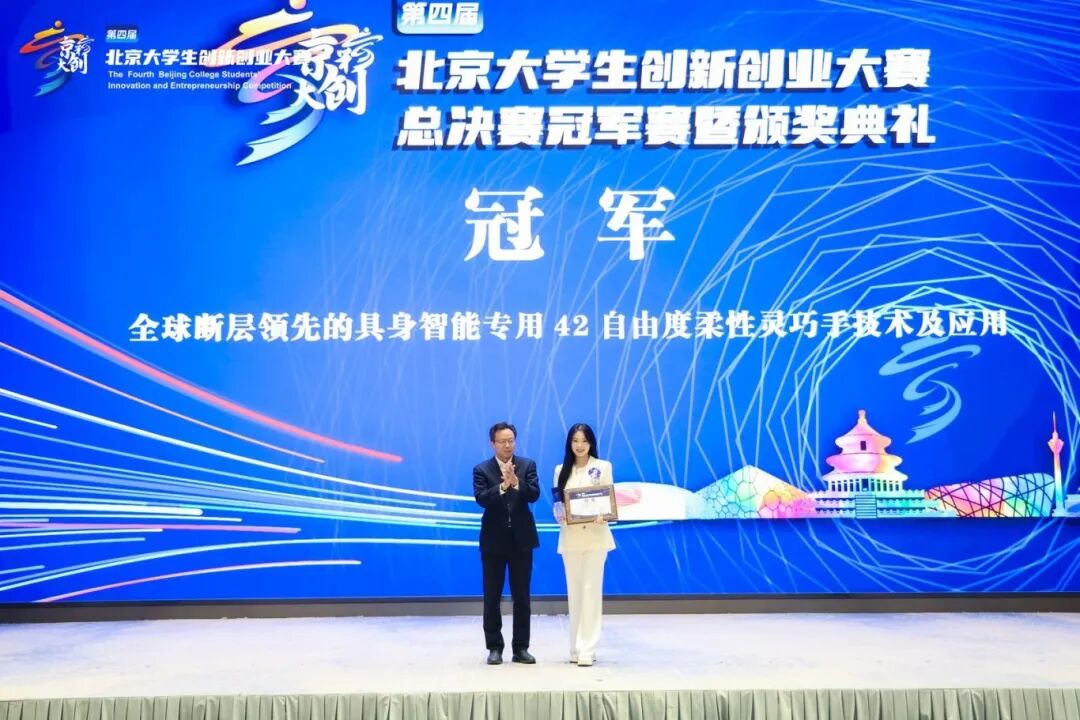 11月11日,由北京市教育委員會(huì)、北京市人力資源和社會(huì)保障局、北京市發(fā)展和改革委員會(huì)聯(lián)合主辦,北京高校大學(xué)生就業(yè)創(chuàng)業(yè)指導(dǎo)中心承辦的第四屆“京彩大創(chuàng)”北京大學(xué)生創(chuàng)新創(chuàng)業(yè)大賽總決賽冠軍賽暨頒獎(jiǎng)典禮在中關(guān)村展示中心頤和廳隆重舉行。經(jīng)過層層選拔脫穎而出的6支大學(xué)生創(chuàng)業(yè)團(tuán)隊(duì)同臺(tái)競(jìng)技,最終北京林業(yè)大學(xué)“靈心巧手”團(tuán)隊(duì)?wèi){借“全球斷層領(lǐng)先的具身智能專用42自由度柔性靈巧手技術(shù)及應(yīng)用”項(xiàng)目勇奪本屆賽事冠軍。
