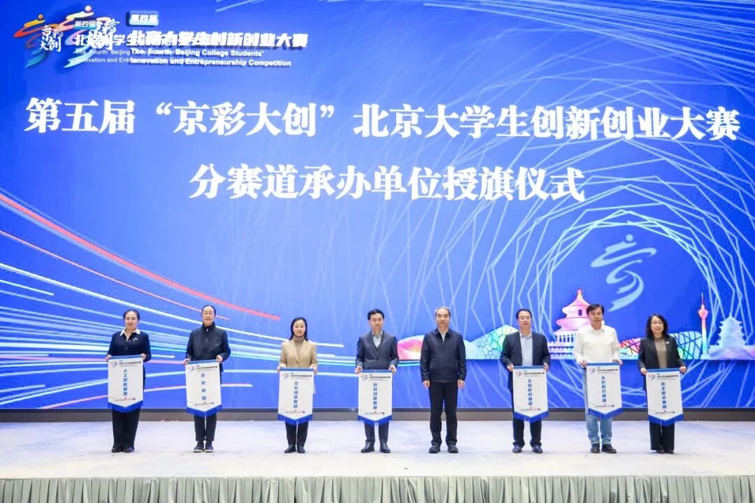 “京彩大創(chuàng)”已發(fā)展為集競(jìng)賽、展示、孵化、投資、育人于一體的綜合性創(chuàng)新創(chuàng)業(yè)生態(tài)平臺(tái)。本屆大賽在組織形式與內(nèi)容設(shè)計(jì)上實(shí)現(xiàn)多項(xiàng)創(chuàng)新:北京建筑大學(xué)、中央戲劇學(xué)院、北京林業(yè)大學(xué)、首都醫(yī)科大學(xué)等高校積極承擔(dān)分賽道決賽組織工作,提升賽事專業(yè)化水平;中關(guān)村科學(xué)城管委會(huì)、中國(guó)銀行北京市分行、中國(guó)工商銀行北京市分行、中國(guó)電信北京分公司、抖音集團(tuán)、騰訊集團(tuán)等單位鼎力支持,構(gòu)建起多元協(xié)同的支持網(wǎng)絡(luò);頒獎(jiǎng)典禮開場(chǎng)舞《新青年?創(chuàng)動(dòng)力》、主題曲《京彩青春 創(chuàng)響未來》合唱等環(huán)節(jié),融合藝術(shù)表達(dá)與青春力量,增強(qiáng)儀式感與傳播力;現(xiàn)場(chǎng)還舉行了第五屆分賽道承辦單位授旗儀式,實(shí)現(xiàn)賽事品牌的傳承與升級(jí)。