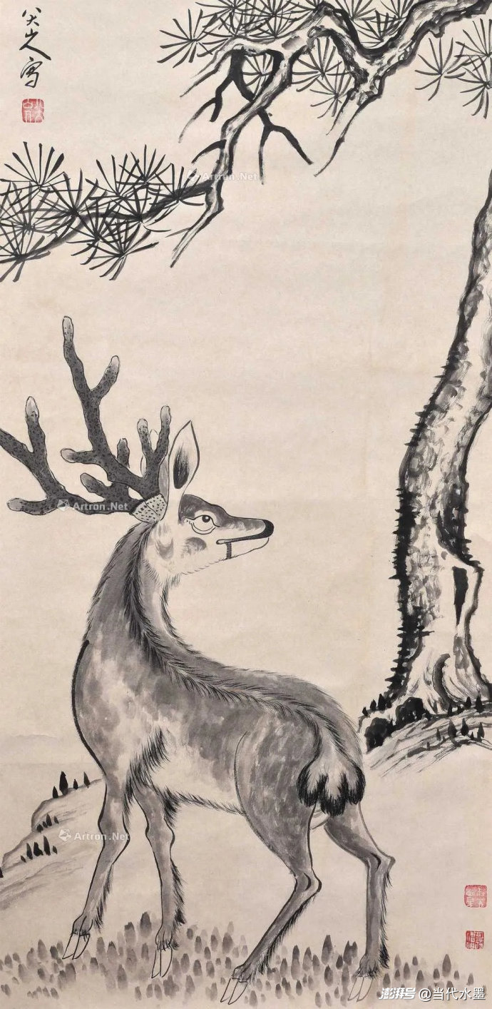 除上述核心符號外,八大山人作品中的其他物象也具有豐富的象征內(nèi)涵。如《鵪鶉圖》中鵪鶉的"鵪"與"安"諧音,象征"事事平安",但其蜷縮的姿態(tài)又暗喻遺民的生存困境與孤傲 。《松鹿圖》中鹿的"易降"諷刺清廷對遺民的壓迫,松與鹿的組合既傳統(tǒng)(象征高潔長壽),又隱含"浮生若夢"的禪宗虛無觀 。
