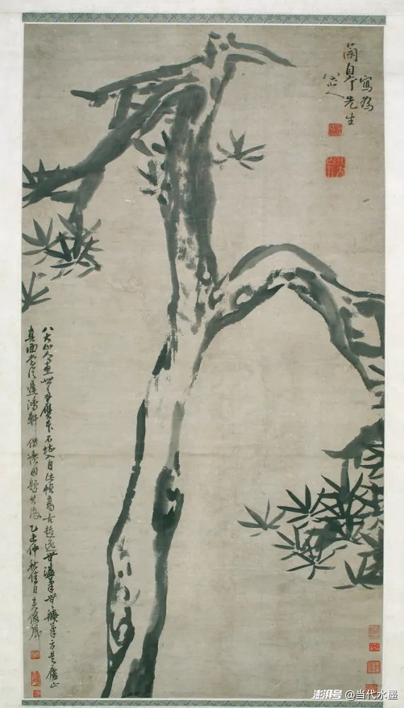 八大山人對筆墨的探索為近現(xiàn)代寫意畫奠定了基礎(chǔ)。潘天壽對"渴筆潤墨"的繼承與創(chuàng)新,如化圓為方、化曲為直的用筆方式,以及化淡為濃、化虛為實(shí)的用墨特點(diǎn),都體現(xiàn)了八大山人筆墨理念的延續(xù)與發(fā)展 。齊白石雖晚年轉(zhuǎn)向"紅花墨葉"風(fēng)格,但承認(rèn)早年受八大山人冷逸畫風(fēng)影響,通過"背臨"保留其精神內(nèi)核 。