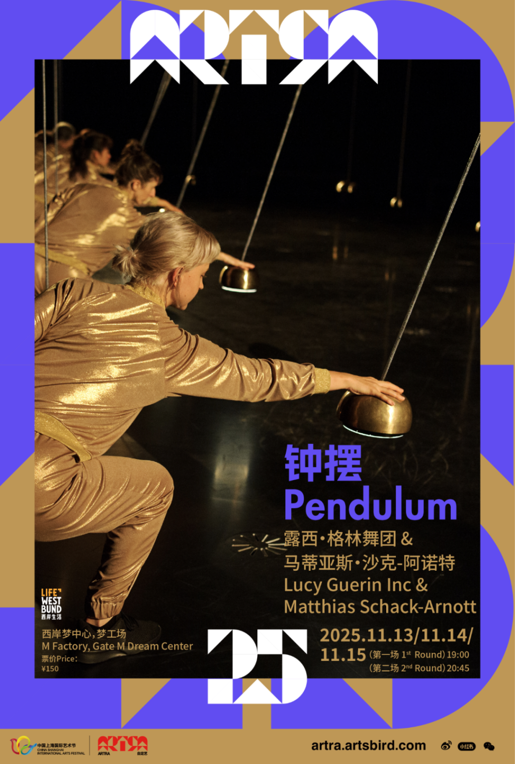 《鐘擺》是澳大利亞著名編舞家露西·格林及其舞團(tuán)與打擊樂(lè)藝術(shù)家馬蒂亞斯·沙克-阿諾特共同創(chuàng)作的大型表演裝置作品。作品通過(guò)機(jī)械運(yùn)動(dòng)與舞者表演的對(duì)話,探討時(shí)間、重力與存在的本質(zhì)。39座精密設(shè)計(jì)的互動(dòng)鐘擺裝置構(gòu)建出一個(gè)融合舞蹈、聲音與裝置藝術(shù)的非鏡框式舞臺(tái),以沉浸式的聲光體驗(yàn)引領(lǐng)觀眾踏上一場(chǎng)關(guān)于時(shí)間與存在本質(zhì)的冥想之旅。