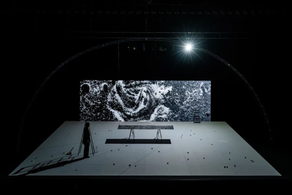 《切線》匯聚了日本媒體藝術(shù)家高谷史郎三十年來(lái)在裝置藝術(shù)、戲劇和現(xiàn)代舞蹈領(lǐng)域的跨界藝術(shù)探索,旨在開(kāi)創(chuàng)當(dāng)代舞臺(tái)藝術(shù)的全新表現(xiàn)形式。作品以“閾值空間”為主題,深入探討現(xiàn)實(shí)與超現(xiàn)實(shí)之間的感知邊界,通過(guò)精密的光影設(shè)計(jì)與聲場(chǎng)構(gòu)建,創(chuàng)造了一個(gè)獨(dú)特的知覺(jué)場(chǎng)域,重新定義“可見(jiàn)性”和“不可見(jiàn)性”的認(rèn)知邊界,引領(lǐng)觀眾進(jìn)入一個(gè)超越日常的藝術(shù)世界。