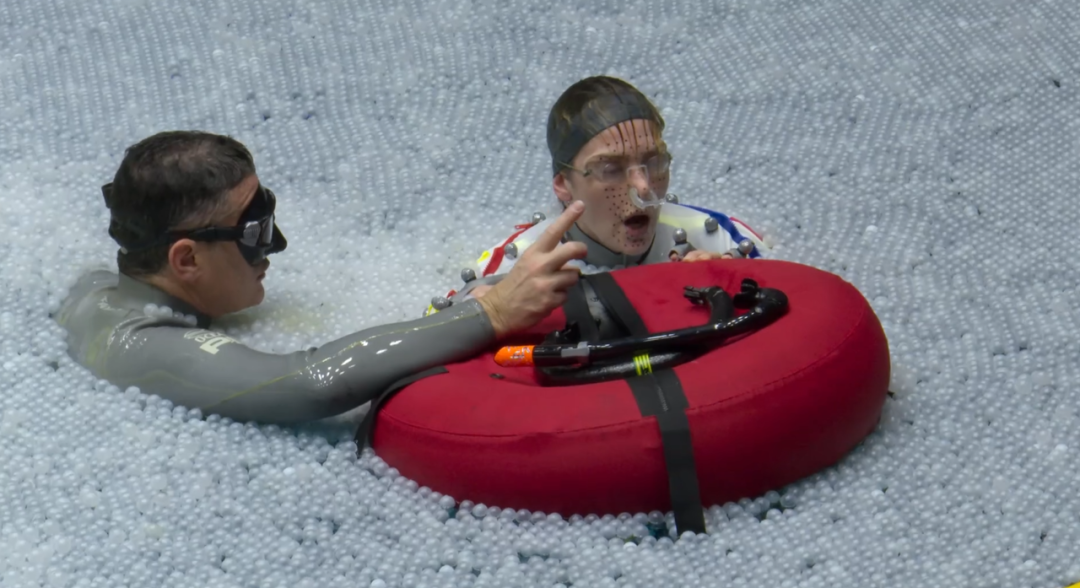 水的密度是空氣的800倍,這種巨大的阻力會深刻影響人體的每一個動作——從發(fā)力方式、動作速率到身體的漂浮與減速。這些基于真實物理規(guī)則的細節(jié),是演員在空氣中無論如何也“演”不出來的。