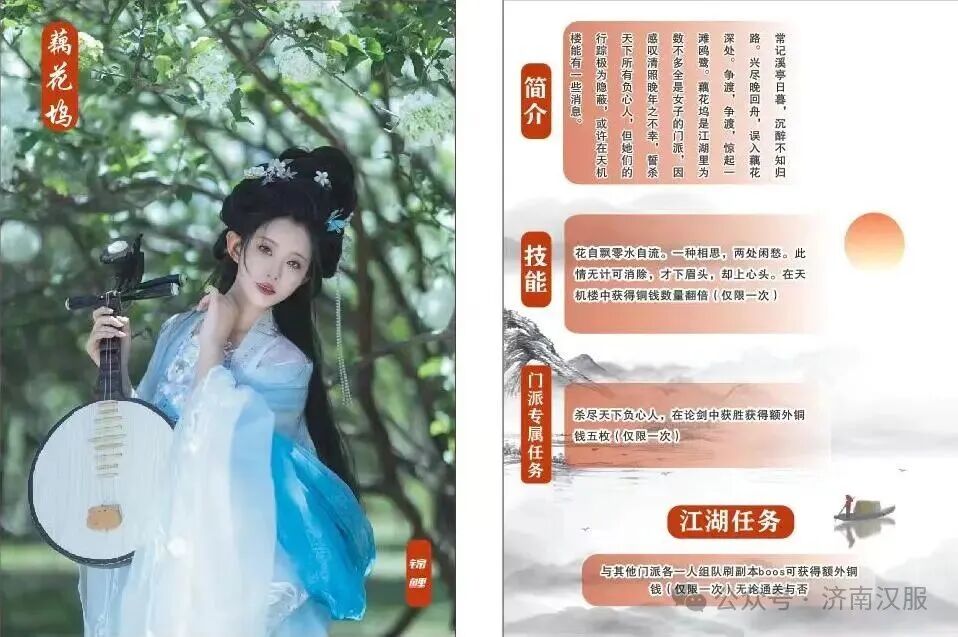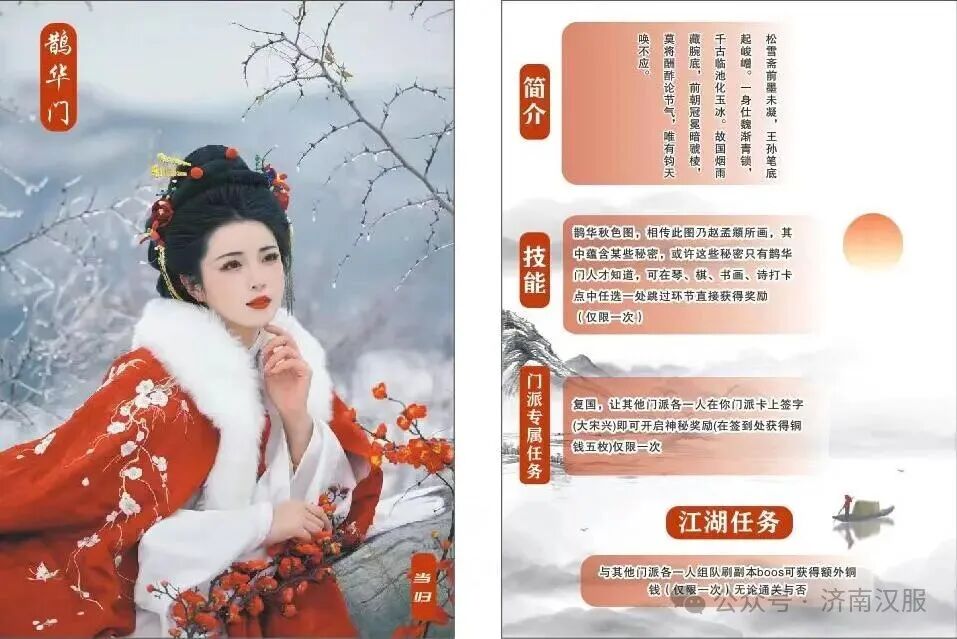 門派專屬技能:復(fù)國(guó),讓其他門派在你門派各一人卡上簽字(上賊船)即可開啟神秘獎(jiǎng)勵(lì)(在簽到處獲得銅錢五枚)僅限一次