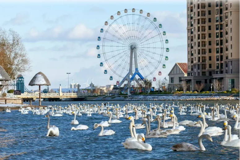 如果你時間有限,或者希望結合購物餐飲體驗,位于榮成市中心位置的櫻花湖體育公園是最佳選擇。這里是全國少有的在城市中就能觀賞大規(guī)模野生天鵝的地方。