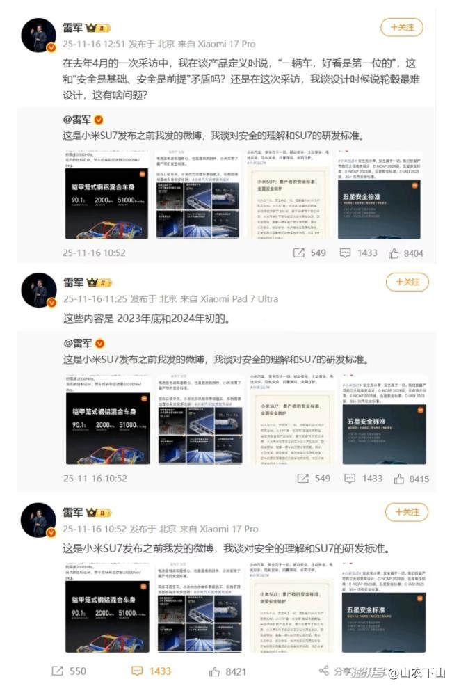 幾乎在同一時(shí)期,雷軍也難得地展示了自己的活人感。11月16日,他突然連發(fā)數(shù)條微博,反駁關(guān)于“小米汽車把好看放在第一位”的相關(guān)質(zhì)疑,字里行間有掩飾不住的怒氣——相比曾經(jīng)熱衷在微博上展示健身日常的博主,這樣的雷軍顯然更真實(shí)。