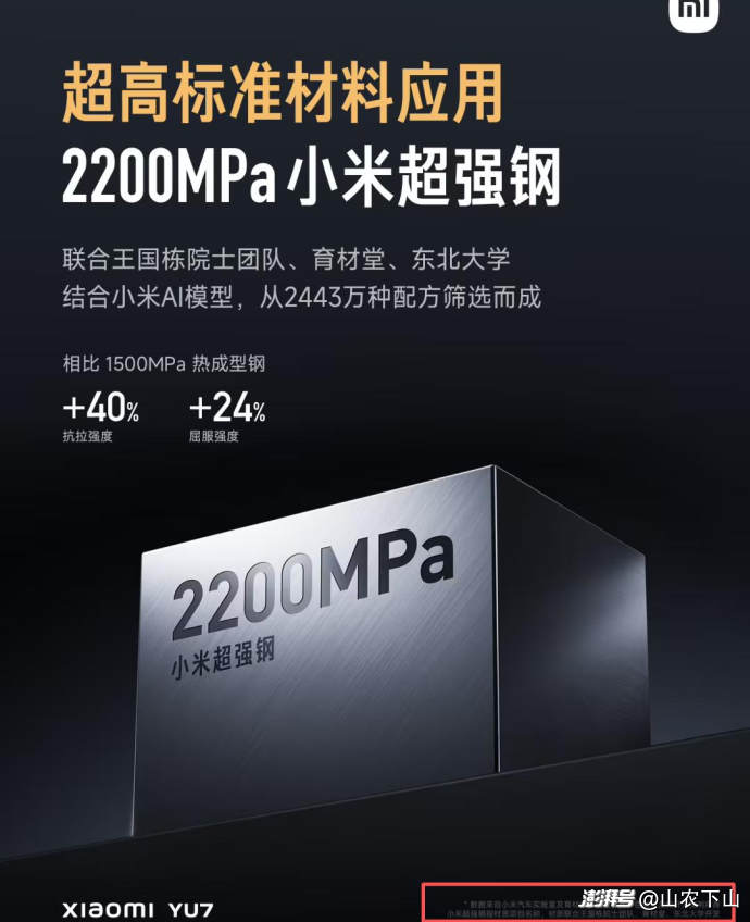 比如“2200MPa小米超強(qiáng)鋼”被小字標(biāo)記為“項(xiàng)目名稱”。小米官方對(duì)此解釋為“兼顧專業(yè)人士的信息需求與公開透明實(shí)事求是的精神”。