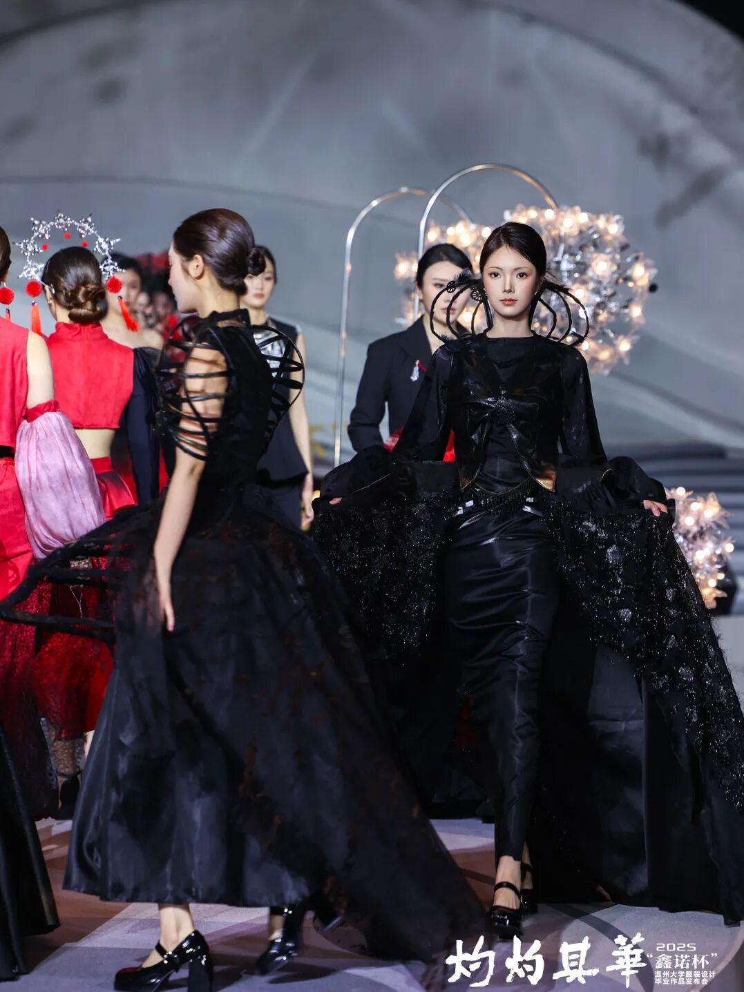 演出時,聚光燈下的楊子萱盡情釋放多年在校園與實(shí)踐舞臺積累的經(jīng)驗(yàn)與自信。她身姿挺拔、臺步穩(wěn)健,以靈動氣場完美詮釋設(shè)計(jì)作品中非遺技藝與西方剪裁的融合之美,在全球時尚舞臺留下溫商院學(xué)子的獨(dú)特印記。