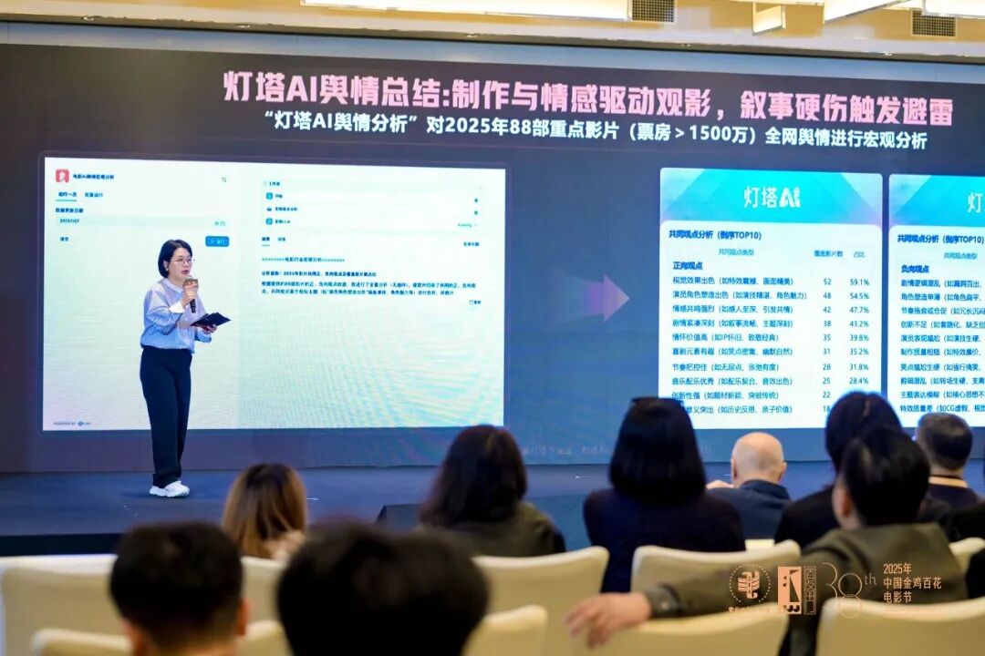 借著金雞百花電影節(jié),燈塔AI發(fā)布劇本評(píng)估、輿情分析、發(fā)行診斷、智能報(bào)表四大功能。