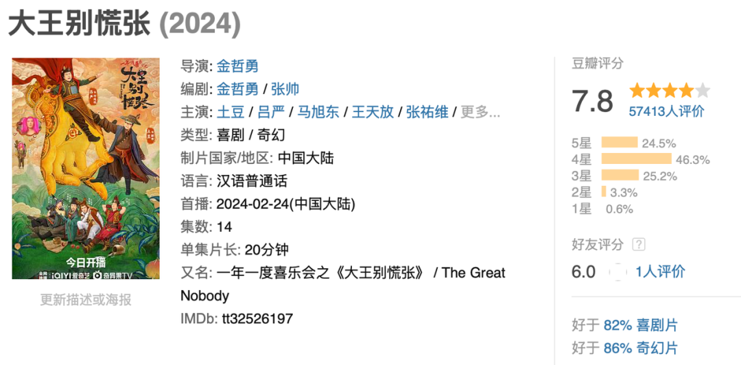△ 《大王別慌張》豆瓣評(píng)分7.8