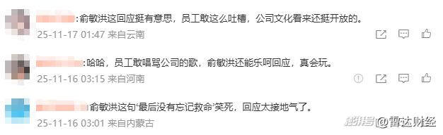 網(wǎng)友對(duì)此表示稱:“員工敢唱罵公司的歌,俞敏洪還能樂呵回應(yīng),真會(huì)玩”、“公司文化看來還挺開放”、“回應(yīng)太接地氣了”。