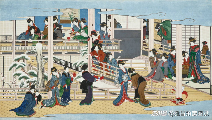 本場最受矚目的焦點,當(dāng)屬喜多川歌麿晚年全景式肉筆畫《深川之雪》。這幅高近2米、寬3.4米的浮世繪巔峰之作,是日本國內(nèi)僅存的《雪月花》系列孤品,最終該作品經(jīng)線上及電話藏家8分鐘30余輪競價,以5527.5萬港元成交,較600-800萬港元估價飆升近7倍,被日本藏家收入囊中,既刷新藝術(shù)家個人紀(jì)錄,也讓這件國寶得以留存日本。