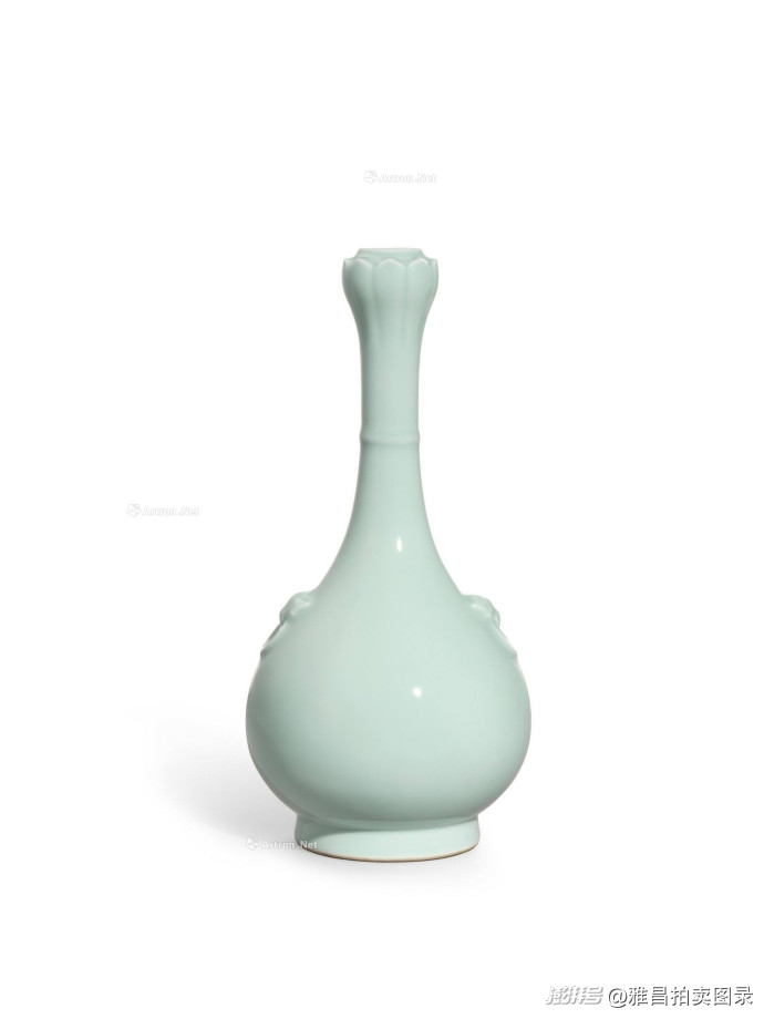 清雍正 粉青釉雙鋪首蓮花口長頸瓶