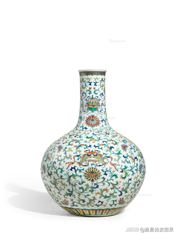 清乾隆 斗彩加粉彩描金纏枝蓮八吉祥天球瓶
