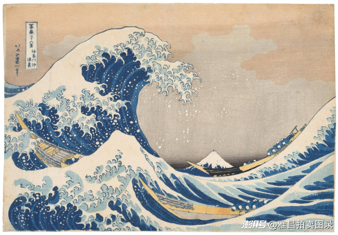 另一項紀(jì)錄由葛飾北齋傳世名作《神奈川沖浪里》創(chuàng)下。這幅被梵高盛贊“浪花如鷲爪”的木版畫,經(jīng)20余輪激烈爭奪,以2172.5萬港元成交,為估價的2.7倍,再度印證“浮世繪三杰”作品在全球市場的硬通貨屬性。值得關(guān)注的是,北齋《富岳三十六景》系列中的《凱風(fēng)快晴》《山下白雨》同步上拍,均超估價成交,形成“北齋三絕”齊聚熱銷的盛況。