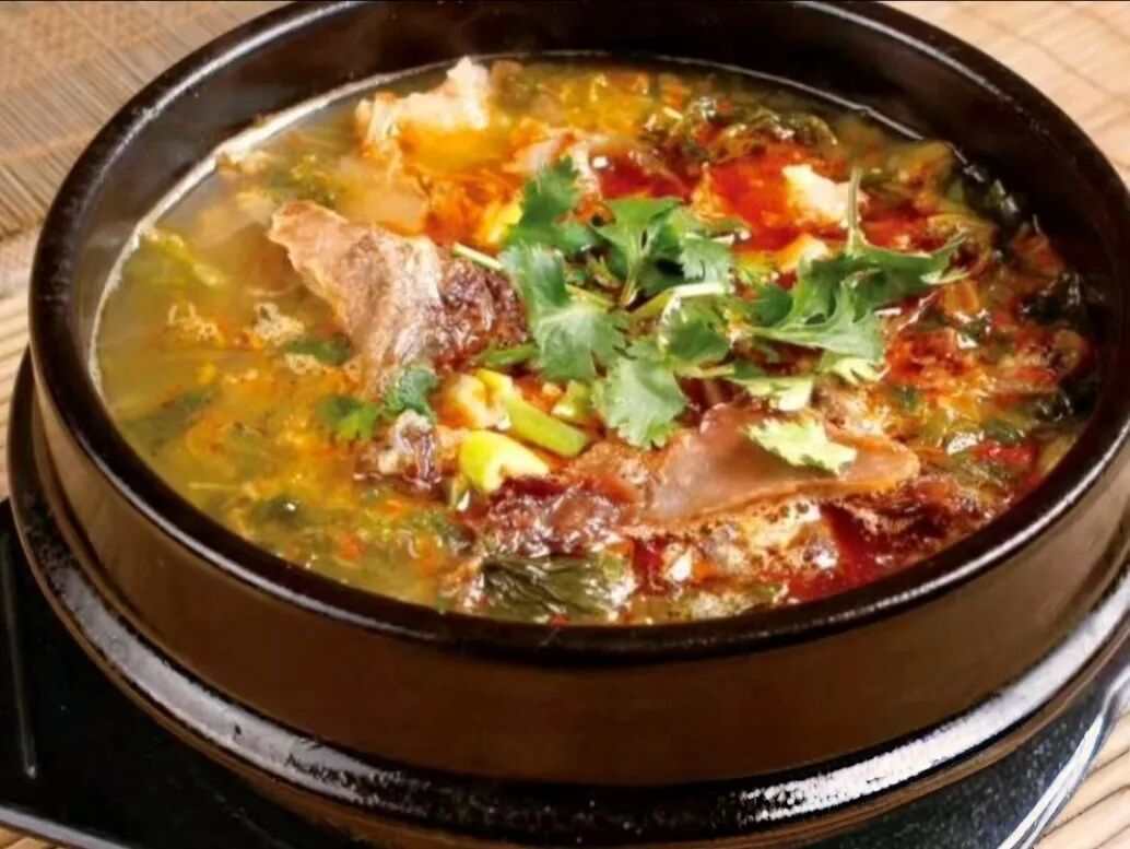 朝鮮族傳統(tǒng)湯品,選用新鮮狗肉配以多種香料熬制。湯色乳白,肉質(zhì)酥爛,具有溫補功效(食用需遵守當(dāng)?shù)匾?guī)定與個人意愿)。