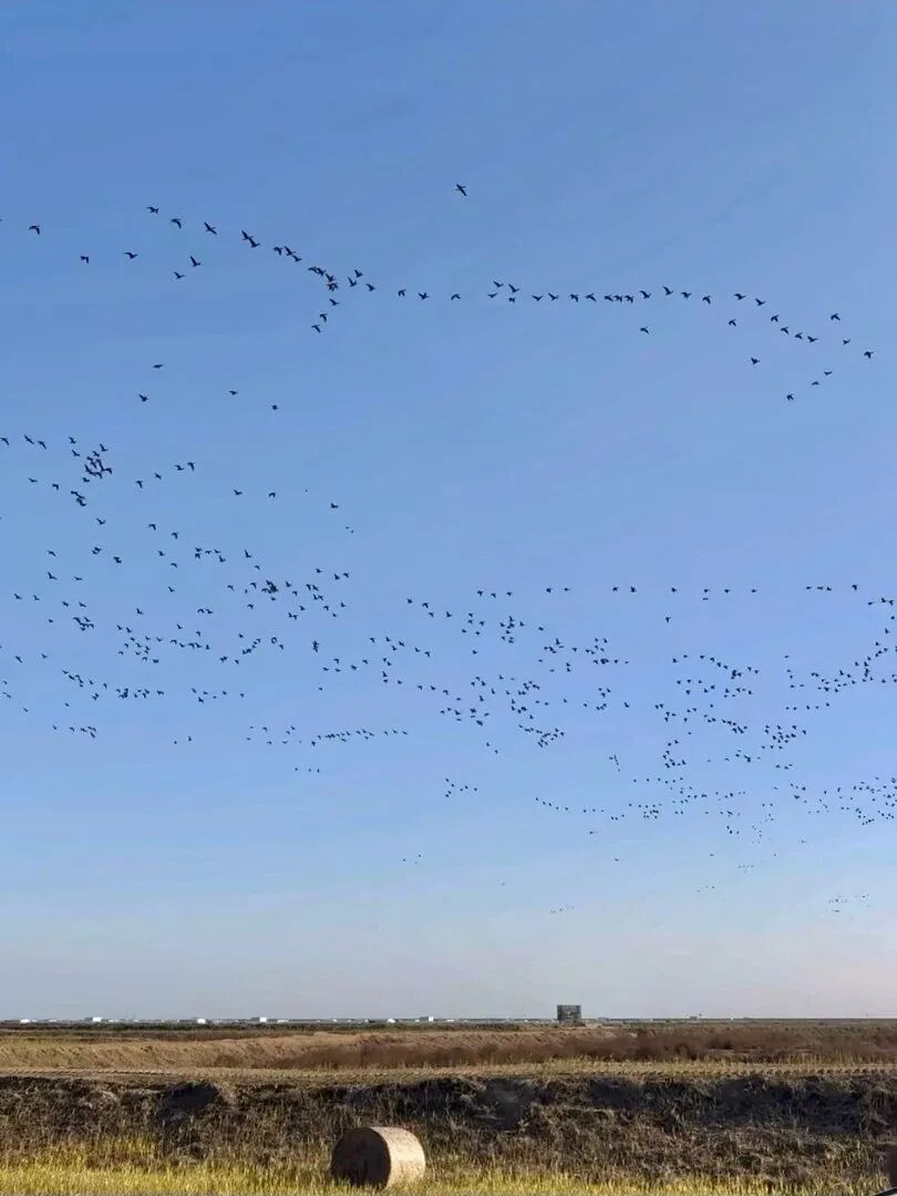 這些被網(wǎng)友親切稱為“瑞士卷”的草垛,本是農(nóng)耕生活的尋常一景,卻因與天上鳥浪的同框,產(chǎn)生了奇妙的化學(xué)反應(yīng)。
