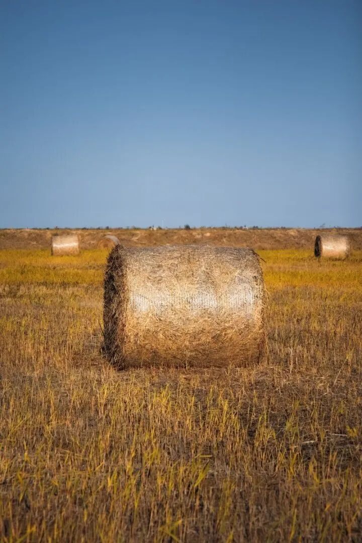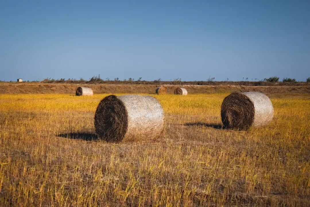 收割后的麥田里,草垛整齊列隊(duì),在夕陽下泛著溫暖的金色。