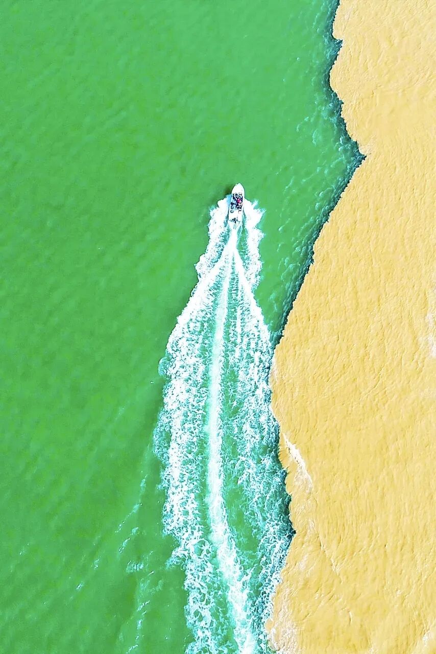 那藍(lán)黃分明的水線,不是簡單的交匯,是母親河與大海的對話,是陸地與海洋的私語,是獨(dú)屬于東方的地理史詩,是其他景致難以復(fù)刻的獨(dú)特印記。