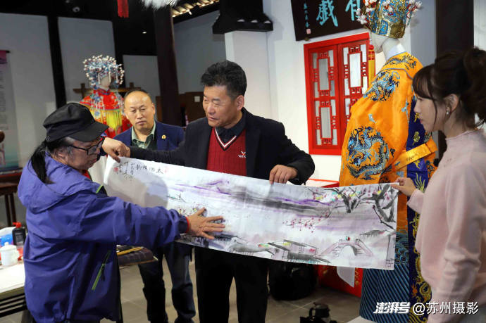 活動(dòng)現(xiàn)場(chǎng),蘇州知名畫(huà)家魏云龍、談宗旺、廖宇、黃敘明、徐云春、周增元、吳載華、郭金林、姚雪翊、姚雪遺以及特邀嘉賓梅康、朱建華、汪曼等悉數(shù)到場(chǎng)。江蘇舞臺(tái)美術(shù)學(xué)會(huì)會(huì)員、蘇州市非遺傳承人(劇裝戲具制作技藝)丁余老師全程參與其中。他們以畫(huà)展為橋梁,搭建起了一個(gè)高端的藝術(shù)交流平臺(tái),讓藝術(shù)的火花在七都鎮(zhèn)綻放。