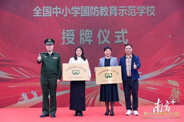 佛山市鐵軍小學(xué)、元甲學(xué)校被授予“全國國防教育示范學(xué)校”牌匾。