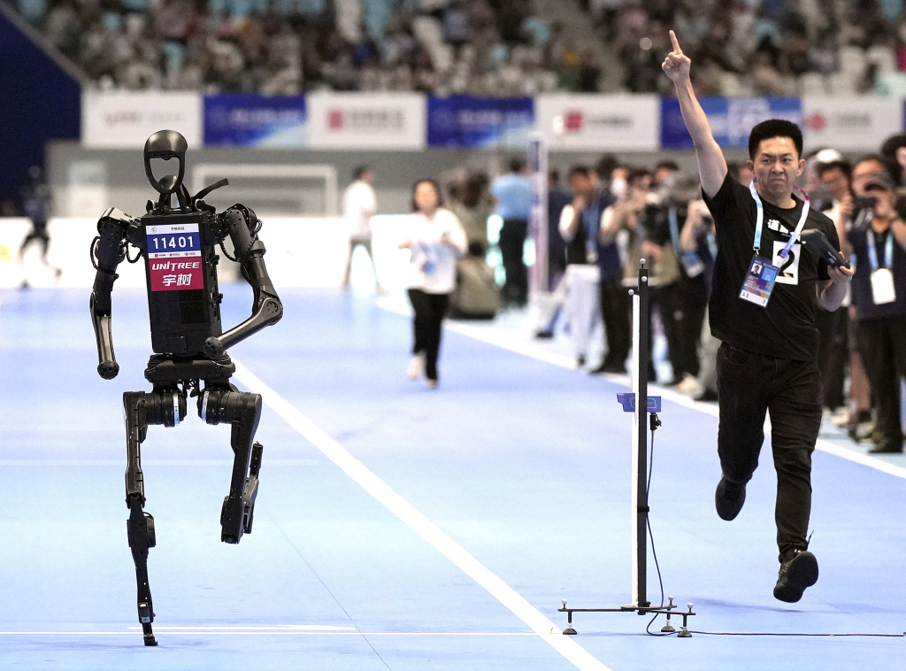 8月,在首屆世界人形機器人運動會上,靈翌科技(宇樹科技子公司)的H1斬獲1500米、400米和4×100米三項冠軍,金牌數(shù)與總獎牌數(shù)均位列第一。在“百米飛人”決賽中,天工機器人以21秒50的成績奪冠。
