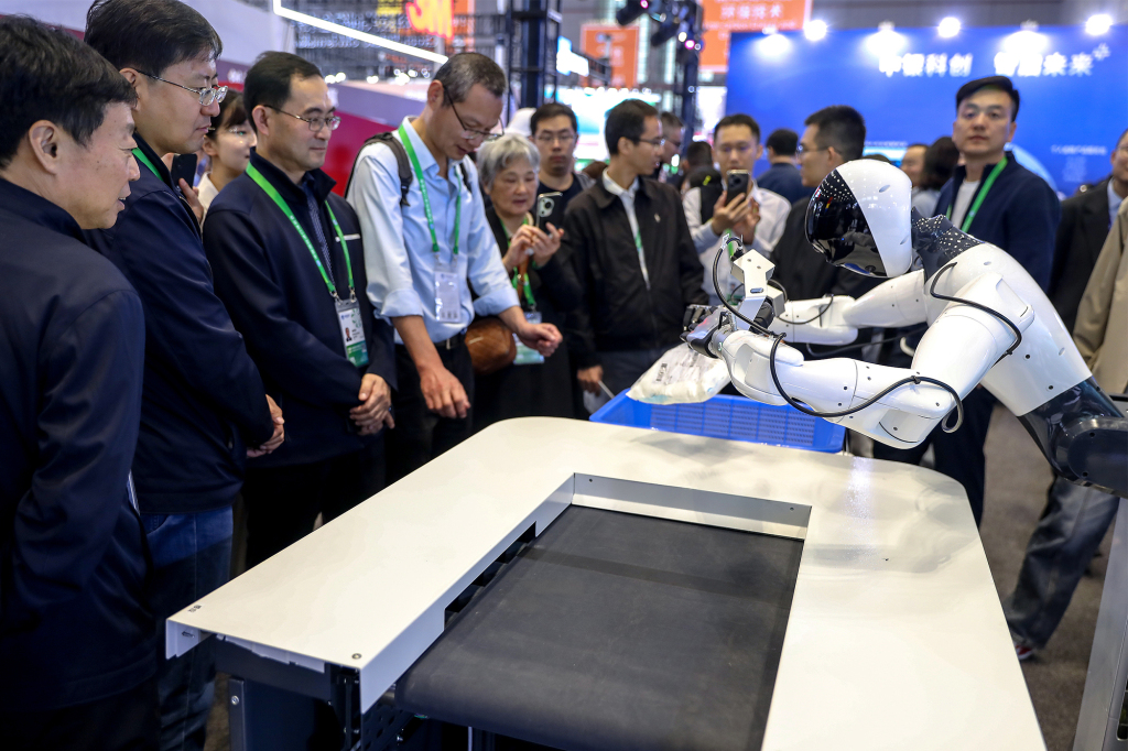 11月的第八屆進博會(CIIE)則呈現(xiàn)了應(yīng)用場景的“全景預(yù)覽”:秀功夫展示格斗、下車間檢測產(chǎn)品質(zhì)量、在新聞中心提供精準(zhǔn)遞水服務(wù)……從基礎(chǔ)服務(wù)到高難度展示,機器人的能力值被全面拉開。