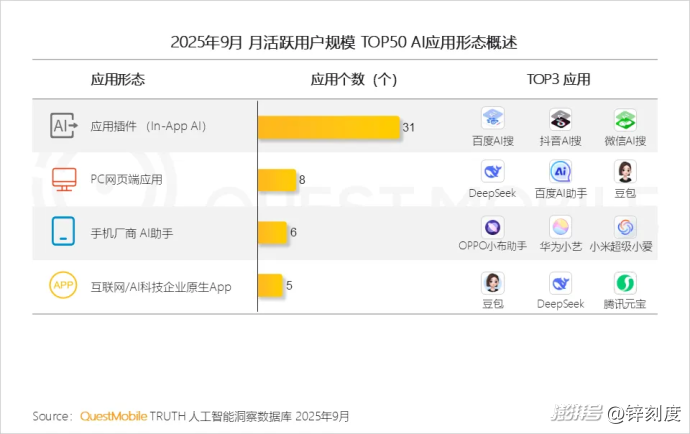 字節(jié)跳動(dòng)旗下的豆包,一直保持穩(wěn)步增長,到了2025年第三季度月活用戶數(shù)達(dá)到1.72億,超過DeepSeek的1.45億;騰訊旗下的騰訊元寶,2025年上半年的月活用戶數(shù)同比增長55.2%,位居AI原生應(yīng)用飆升榜第二名,成為AI原生移動(dòng)應(yīng)用中最令人矚目的“黑馬”;阿里巴巴旗下的千問與靈光,在2025年11月雙雙成為現(xiàn)象級(jí)產(chǎn)品,超越ChatGPT、Sora、DeepSeek成為史上增長最快的千萬級(jí)/百萬級(jí)AI應(yīng)用……