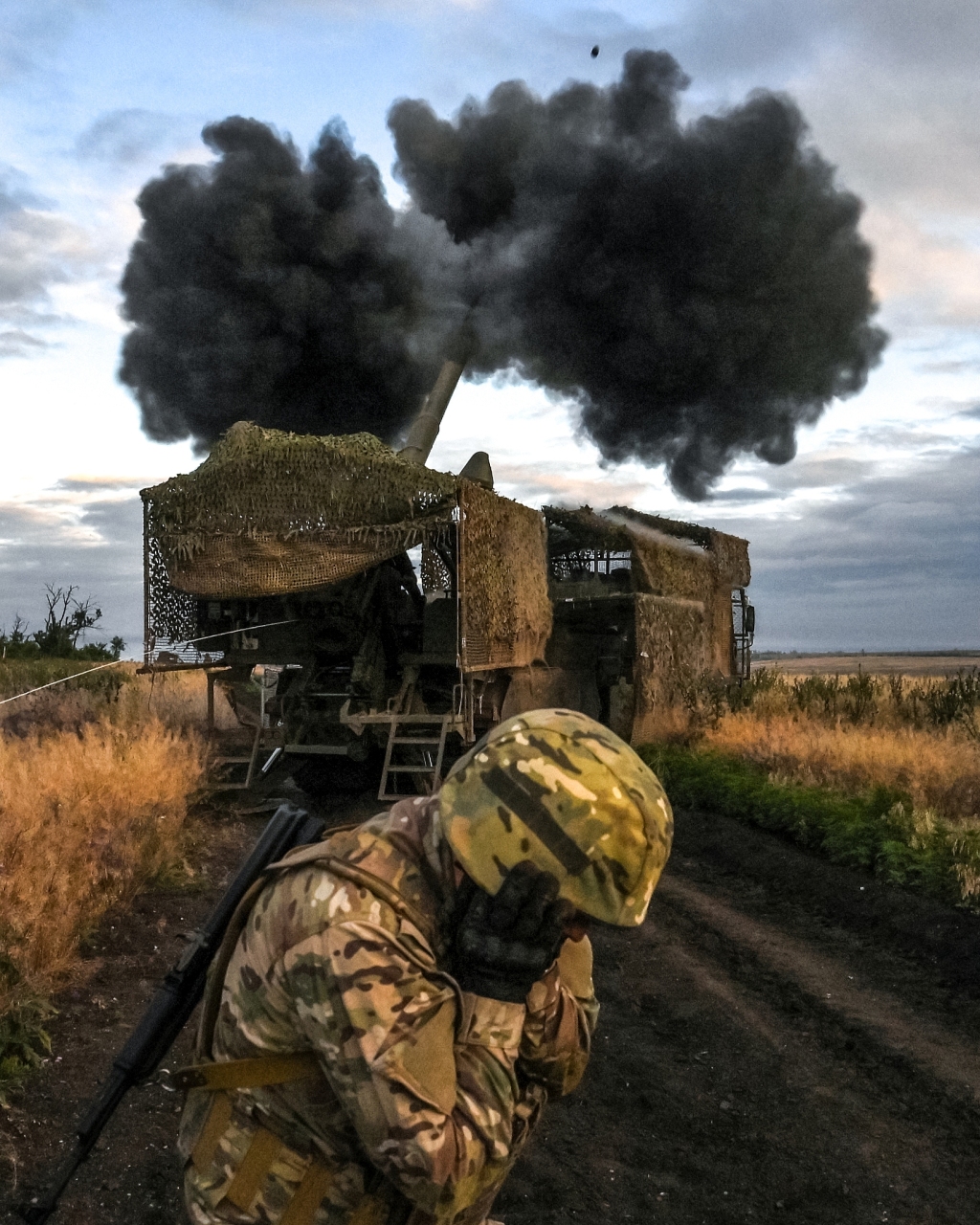 當(dāng)?shù)貢r間2025年7月2日,頓涅茨克地區(qū),俄軍“中央”集群的士兵在前線操作2S44“風(fēng)信子-K”自行榴彈炮向烏克蘭陣地開火。視覺中國 圖