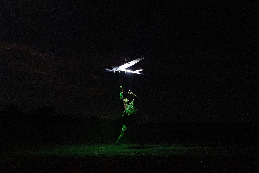 當(dāng)?shù)貢r間2025年9月6日,烏克蘭頓涅茨克地區(qū),一名烏克蘭軍人在前線放飛偵察無人機。視覺中國 圖