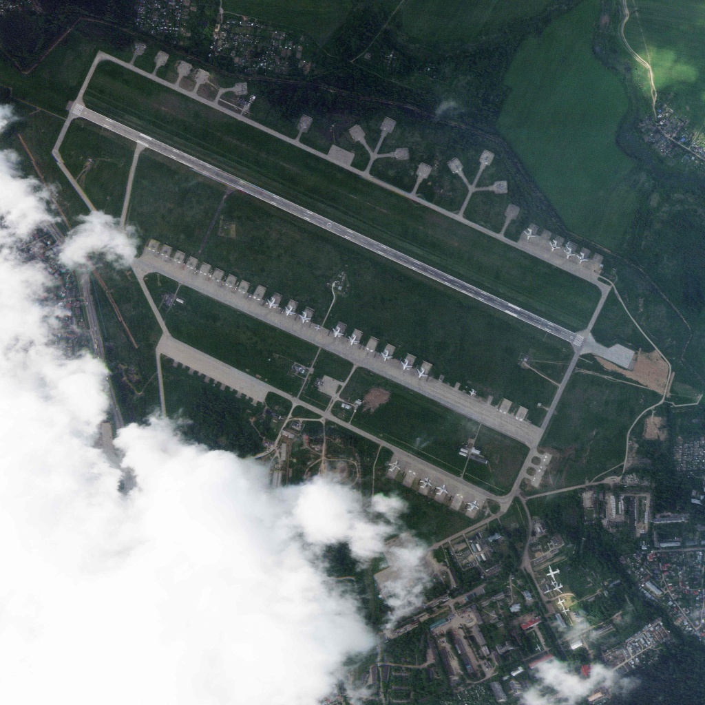 當(dāng)?shù)貢r間2025年6月4日,Planet Labs PBC發(fā)布的衛(wèi)星圖像顯示,2025年6月2日拍攝的伊萬諾沃空軍基地可以清晰看到停放的飛機。視覺中國 圖