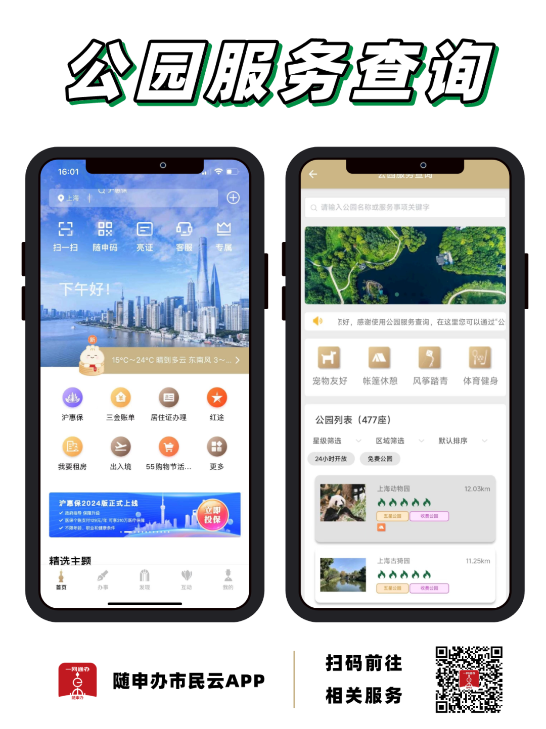 第一步:打開“隨申辦市民云”APP,搜索進(jìn)入“公園服務(wù)查詢”?;驋呙柘路蕉S碼即可進(jìn)入。