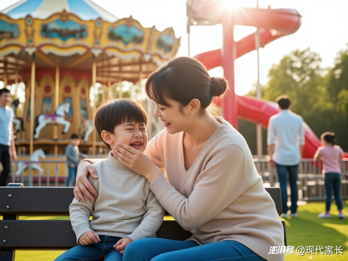 就這樣,小男孩忍著疼,還被媽媽數(shù)落了一頓,自然悶悶不樂。他呆坐著,毫無興趣地看著別人玩。媽媽并沒有留意失落的他,而是繼續(xù)低頭看手機(jī)。