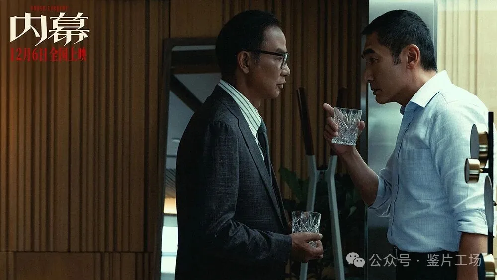 這一次,導(dǎo)演麥兆輝將鏡頭對(duì)準(zhǔn)了一個(gè)香港影壇鮮少觸碰的黑暗領(lǐng)域——慈善基金的洗錢網(wǎng)絡(luò)。當(dāng)“濟(jì)拔堂”財(cái)務(wù)總監(jiān)楊滔在舞臺(tái)上離奇吊死的畫面定格時(shí),觀眾看到的不僅是一具懸掛的軀體,更是整個(gè)資本體系精密運(yùn)轉(zhuǎn)的絞肉機(jī)中,一個(gè)被無(wú)情碾軋的齒輪。這部影片的誕生恰逢香港電影市場(chǎng)的至暗時(shí)刻:2024年票房跌至13億港元,創(chuàng)13年新低,九間影院相繼結(jié)業(yè)。在這樣的行業(yè)寒冬中,《內(nèi)幕》肩負(fù)著超越票房的意義——它試圖在類型片框架內(nèi)重塑香港犯罪電影的社會(huì)批判鋒芒,以四大影帝的巔峰博弈探索商業(yè)電影承載公共議題的可能性。