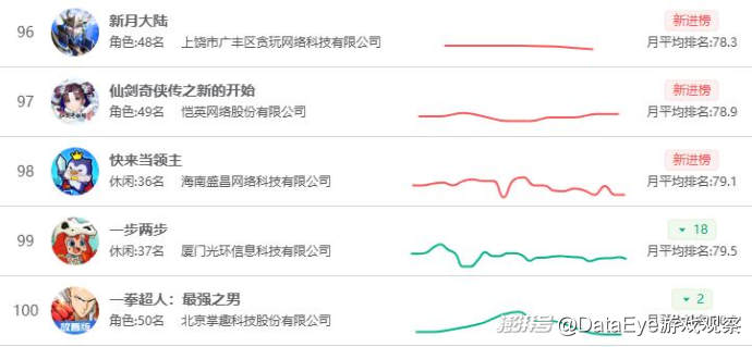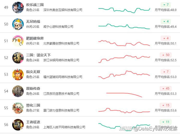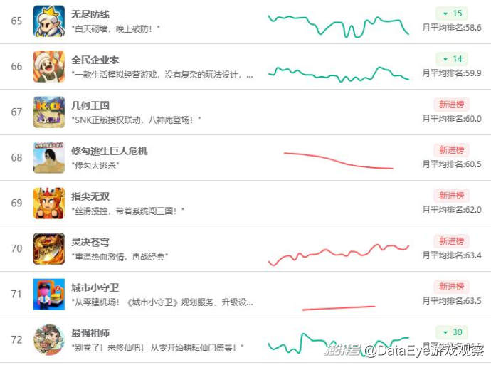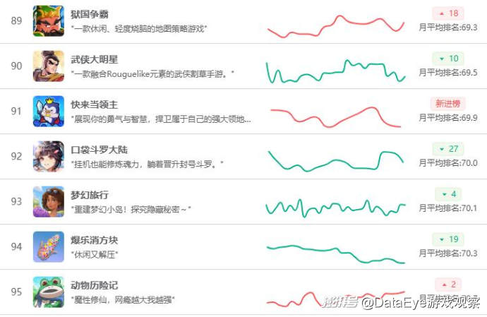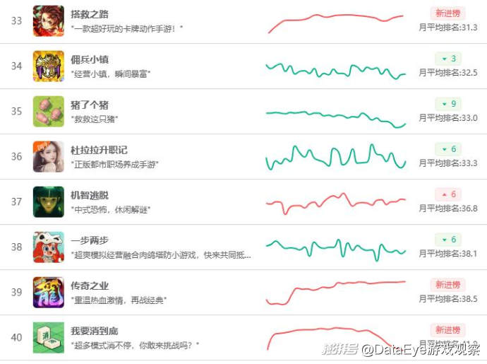 排名飆升方面,《向往的生活》排名飆升30名,沖入月榜TOP30,模擬經(jīng)營賽道競爭局面加劇。B站《三國:謀定天下》上漲50名,排名11月暢銷榜第52名,貪玩《原始傳奇》排名也飆升45名,沖到暢銷榜第54名的位置。