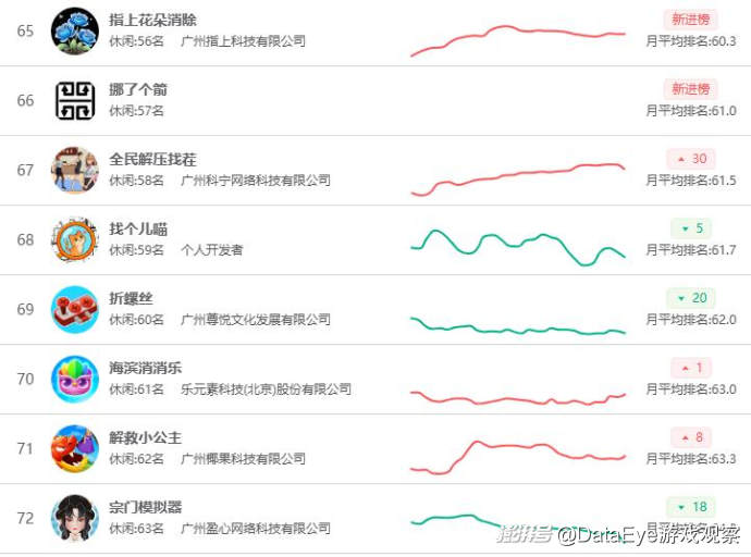新游方面,《箭了又箭》空降暢玩榜第17名,帶動 箭頭解謎新玩法崛起,多款同品類產(chǎn)品在11月新進榜。