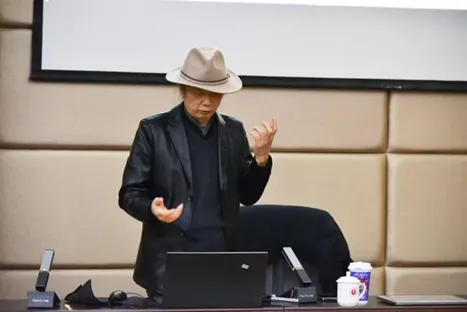 王小松教授的講座題目是“被AI設(shè)計(jì)”的個(gè)體探索與時(shí)代對話。以線性敘事的方式從自身出發(fā)進(jìn)行串聯(lián),歷經(jīng)“起點(diǎn)與轉(zhuǎn)折”、“身份轉(zhuǎn)變”、“自我探索”“時(shí)代造人”四個(gè)階段,最后回到在當(dāng)下時(shí)代中的藝術(shù)創(chuàng)作:“回歸藝術(shù)家是我的最終的理想”,并以讓·鮑德里亞(Jean Baudrillard,1929-2007)和路德維?!ぜs瑟夫·約翰·維特根斯坦(Ludwig Josef Johann Wittgenstein,1889-1951)的名句為講座結(jié)束語,勉勵(lì)各位同學(xué)。王小松教授將不同時(shí)代、不同人生階段、不同身份轉(zhuǎn)化的困境為節(jié)點(diǎn),提出自己的破局思路,為年輕學(xué)子提供了可參看范本。